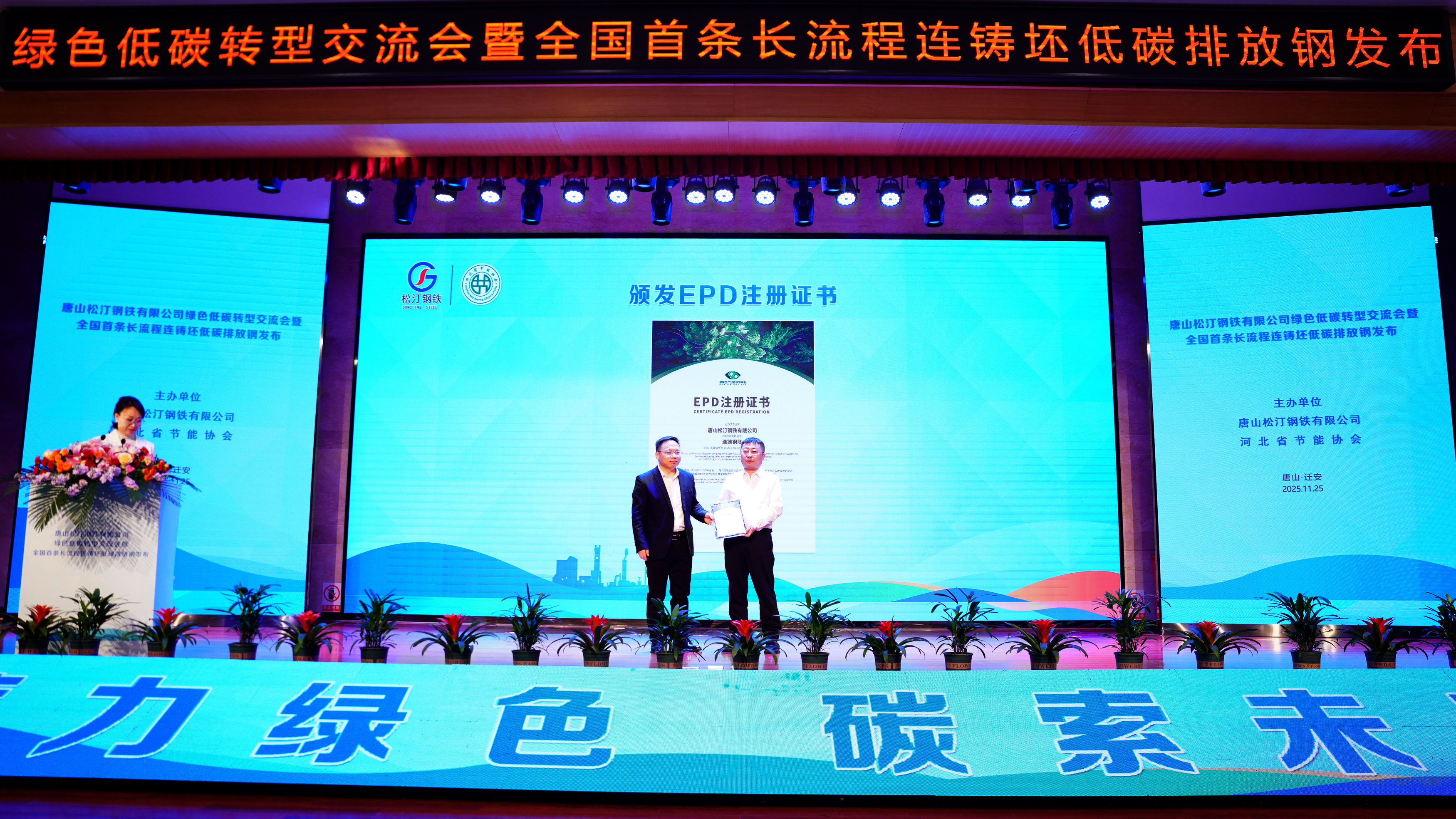 活动中,中国钢铁工业协会颁发的“粗钢产线低碳排放钢认证证书”与欧冶云商授予的国际标准环境产品声明(EPD)证书,为企业发展注入强劲动力。其中,EPD证书作为“产品绿色护照”,助力企业叩开国际高端市场大门;低碳排放钢证书则成为“全球市场通行证”,让企业在同质化竞争中突围,成功切入高附加值产品赛道。